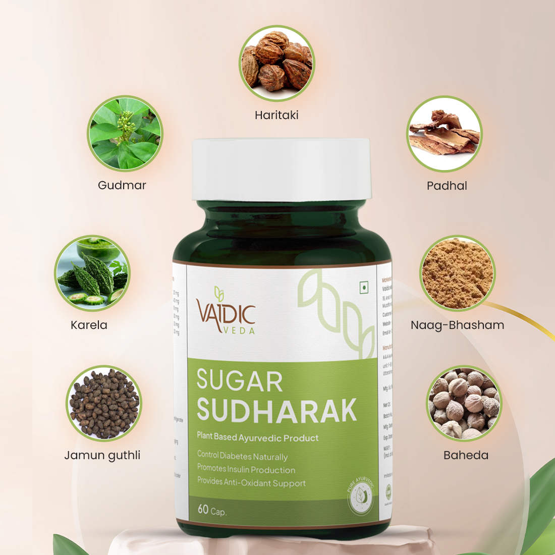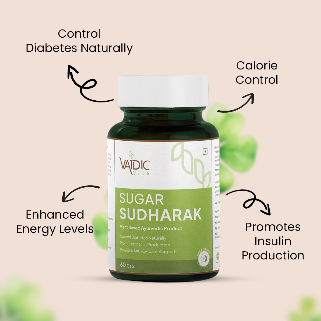 Introducing Sugar Sudharak, a plant-based ayurvedic product that helps control diabetes naturally. Say goodbye to harmful chemicals and hello to a natural solution.